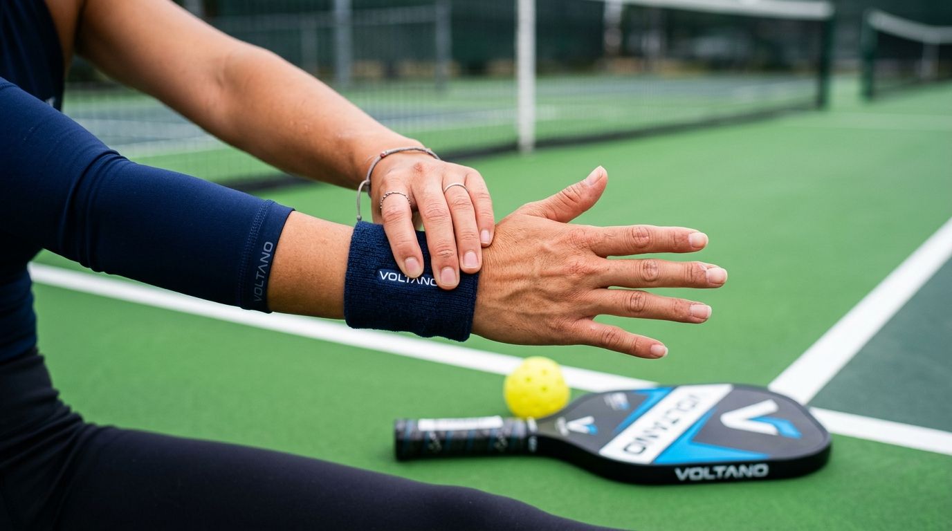 Hậu quả: Đây là nguồn gốc của "Pickleball elbow" — một dạng viêm gân khuỷu tay do lạm dụng. Khắc phục: Dành riêng 60–90 giây xoay và khởi động cổ tay, khuỷu tay trước mỗi buổi.