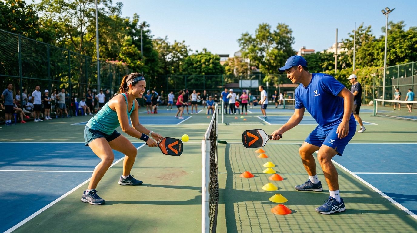 Bài viết giải thích chi tiết kỹ thuật dink pickleball — từ tư thế đứng, cơ chế cú đánh, đến 5 lỗi phổ biến nhất và các bài tập luyện thực tế giúp bạn kiểm soát trận đấu tại kitchen line.