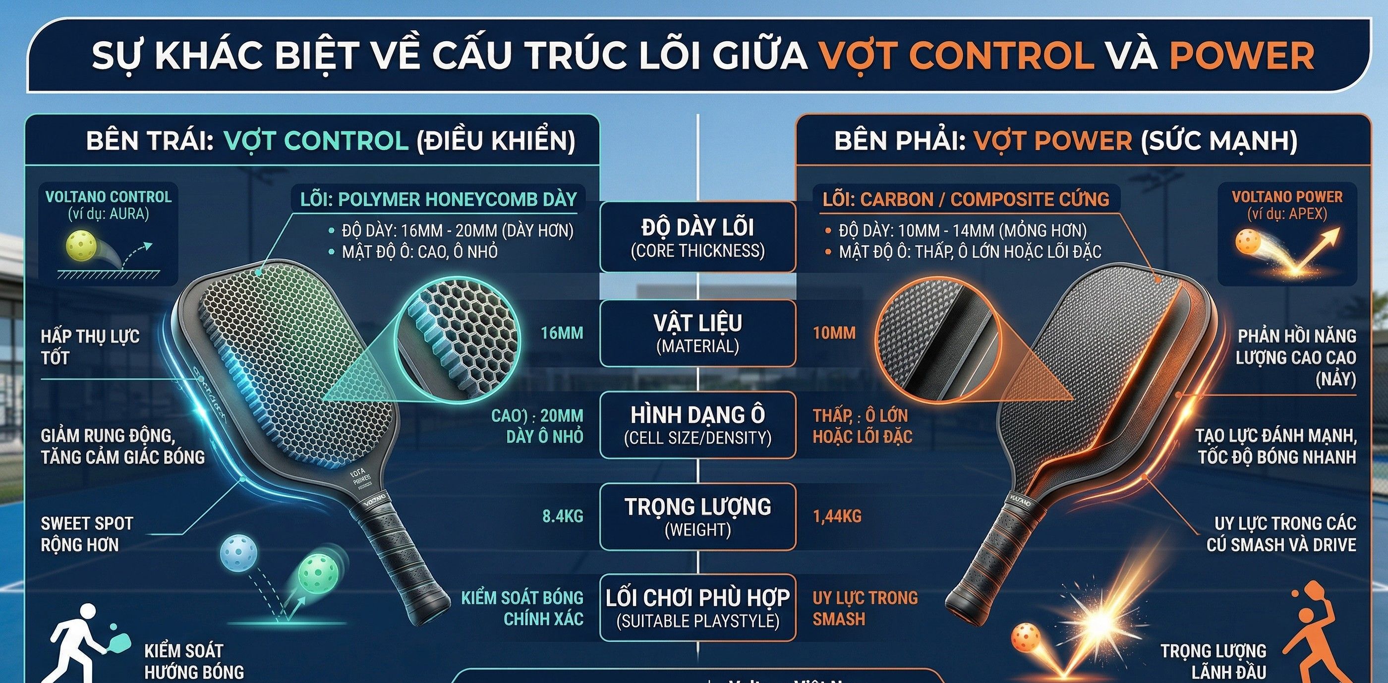Tại Voltano, chúng tôi coi cây vợt là sự mở rộng của tư duy chiến thuật. Nếu bạn chọn đúng, nó sẽ là trợ thủ đắc lực; nếu chọn sai, nó sẽ trở thành gánh nặng trên cổ tay. Hãy cùng phân tích sâu hơn 1500 chữ về hai thái cực này để tìm ra "chân ái" cho hành trình chinh phục vạch Kitchen của bạn.
